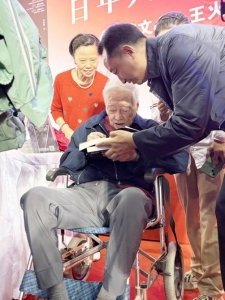 “百年火铸,文心永续——《火铸文心:王火传》新书发布会”上嘉宾云集。每当主持人念出“王火”的名字,老人便下意识地试图从轮椅上站起来,向大家挥手致意,惊得工作人员赶忙俯身安抚。