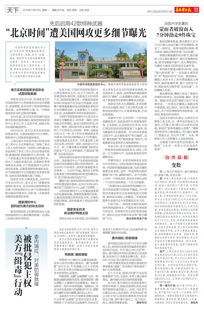 据法国媒体报道,数名蒙面人员10月19日潜入法国巴黎卢浮宫博物馆,抢走了一批珍宝。法国内政部长洛朗·努内兹说,被抢文物的价值“无法估量”。