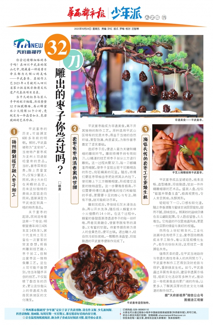 你尝过精雕细琢的枣子吗?在四川平武县的深山之中,便藏着一种连昔日帝王都为之倾心的美味——平武套枣。其制作工艺2023年4月被列入四川省第六批省级非物质文化遗产代表性项目名录。