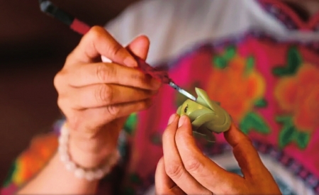 选好枣子后,便进入最为关键和精细的雕刻环节。雕刻师傅手持专用刻刀,以精湛的技艺将枣子划分三方进行雕刻。这一过程共需32刀,每一刀都精准而细腻,使枣子呈现出若干花瓣相连的形态,宛若精美的花篮。随后,师傅们要连枣带核由枣把处将其从内拉下,使花瓣上下三方瓣瓣相套,形成镂空活套的独特造型。这一步骤难度极高,不仅需要师傅们具备熟练的技巧和敏锐的手感,更需要十足的耐心与专注,稍有不慎,就可能前功尽弃。