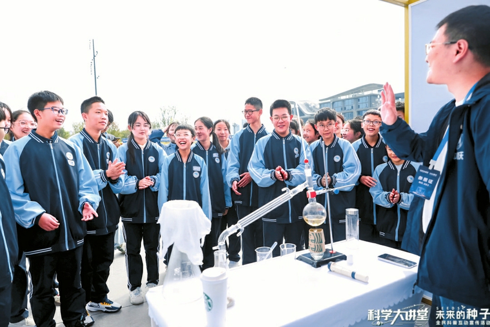 科技成果展现场丰富有趣的互动实验,吸引众多青少年参与。