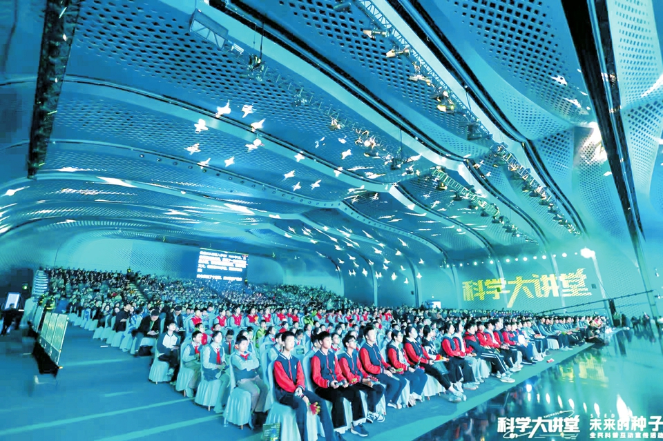 10月25日,“科学大讲堂·未来的种子”全民科普互动宣传活动在成都启幕,图为师生聆听演讲。