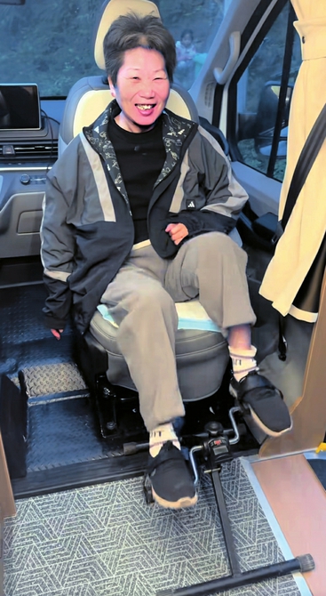 郭求生改造副驾座位方便母亲乘坐、锻炼。