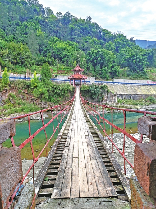 青衣江支流玉溪河自北向南蜿蜒,雨季山洪频发,水势汹汹。芦山县宝盛乡玉溪村河段上,一座铁索桥如长虹卧波——铁链斑驳,桥台沧桑,它便是寿相桥。百余年前,这里是茶马古道的重要节点:自大邑翻横山岗,经大川入芦山,过寿相桥越青龙关至天全,再达西藏地区。马帮铜铃、商人吆喝、背夫号子曾在此回荡;如今古道为公路所替,喧嚣渐远,但寿相桥仍为两岸村民提供着便利,诉说着往昔岁月。
