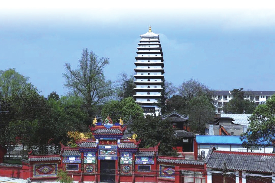 国家级文保单位龙护舍利宝塔,历史可追溯至汉代,初为木构,后毁于战火。现存砖塔始建于元代,是四川省内唯一保存的元代砖塔,具有极高的历史与研究价值。塔高37.8米,外观为十三级密檐式,塔内共七层,造型独特,工艺精湛,2013年被国务院公布为第七批全国重点文物保护单位。