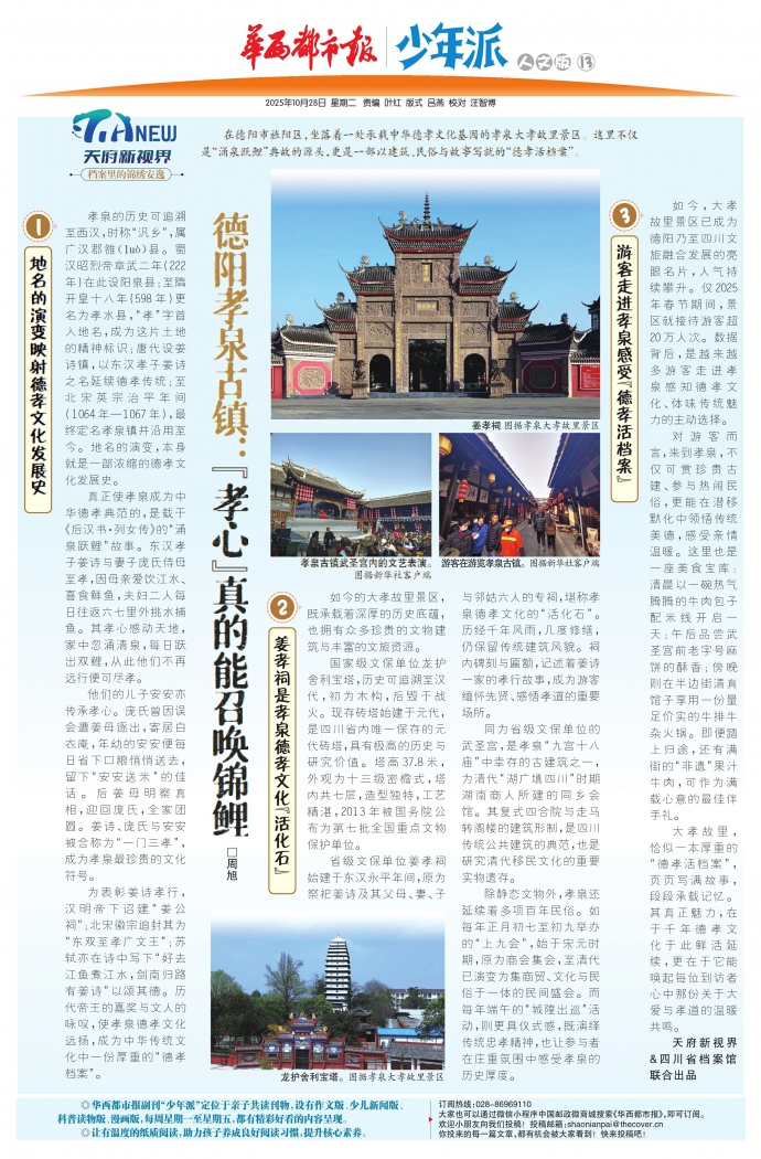 如今,大孝故里景区已成为德阳乃至四川文旅融合发展的亮眼名片,人气持续攀升。仅2025年春节期间,景区就接待游客超20万人次。数据背后,是越来越多游客走进孝泉感知德孝文化、体味传统魅力的主动选择。
