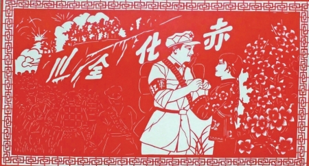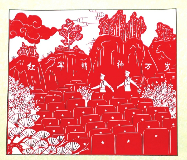 Water flows through the rugged grandeur of the mountains. Trees stretch their branches toward the vast sky. Men with their upper bodies naked press their feet deep in the soil. Flowers blossom from the hands of the women with silky hair. These women preserve the everlasting joy of labor in a special form of art — the Bashan Paper-Cutting.