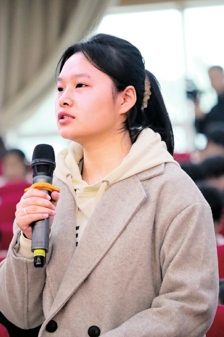 青年传习志愿者周夏同学现场向张杰教授提问。吴德玉摄