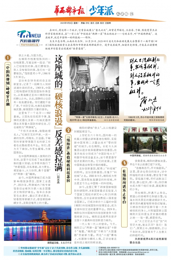 在四川,有这样一个地方,它曾在地图上“查无此处”,却曾是邓稼先、王淦昌、于敏、陈能宽等杰出科学家隐姓埋名,在“一穷二白”中创造出“两弹一星”伟业的地方——它的名字,叫“中国两弹城”。这座城市,就是中国唯一的科技城——绵阳。