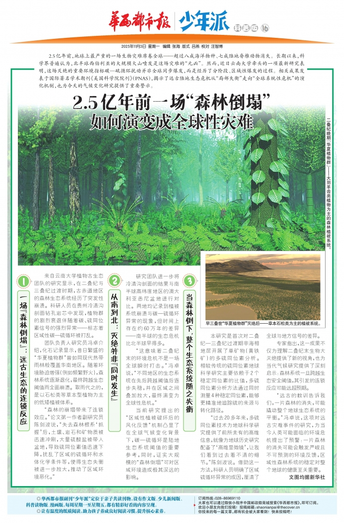 专家指出,这一成果不仅为理解二叠纪末生物大灭绝提供了新的视角,也为当代气候研究提供了深刻启示:森林系统一旦跨越生态安全阈值,其引发的连锁反应可能远超预期。