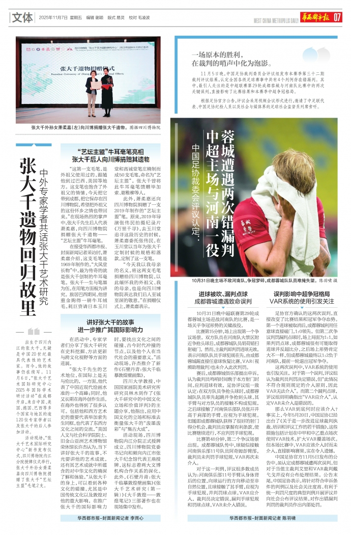出生于四川内江的张大千,无疑是中国20世纪最具代表性的艺术家。而今,他的故事仍在续写。11月6日,“张大千艺术国际研究中心2025年国际学术研讨活动”在成都开启,来自中国、美国、德国、巴西等多个国家与地区的逾120位专家学者以及张大千的后人参加活动。