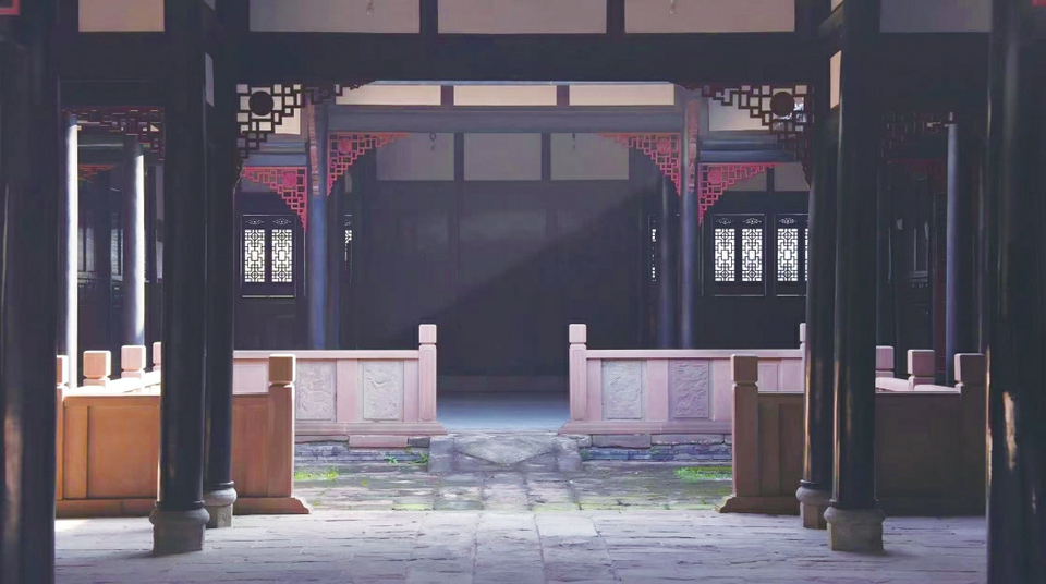 白玉川介绍,邱家祠的修缮,按照不改变文物原状和最小干预的原则,充分保留祠堂古建筑老院落的整体格局、建筑形态、原有风貌,进行修缮性恢复、主体加固,并恢复内装风格。祠堂中青石板路上有两处地点特地用玻璃地板覆盖,透过玻璃,可以看到此处的地面与周围正常的地面形成了数十厘米落差。“随着城市发展,地平面是在不断抬高的。邱家祠作为清代的建筑,其比周围的建筑矮了几十厘米,这样就会出现排水不畅的问题。所以我们在修缮的时候,对建筑进行了整体的提升,将建筑整体往上提升了几十厘米。大家看到那两处玻璃地板时,就能知道邱家祠原来所处的位置。”白玉川说。