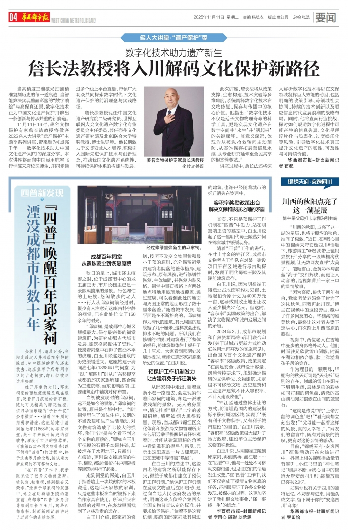 “在‘四普’工作中,我亲眼见证了很多文物被发现、被认定、被重视,感到振奋又荣幸。”漫步于邱家祠的院落中,站立在明蜀端王陵的墓室前,成都市“四普”业务指导组副组长白玉川,向华西都市报、封面新闻记者讲述了近两年的奇妙经历。