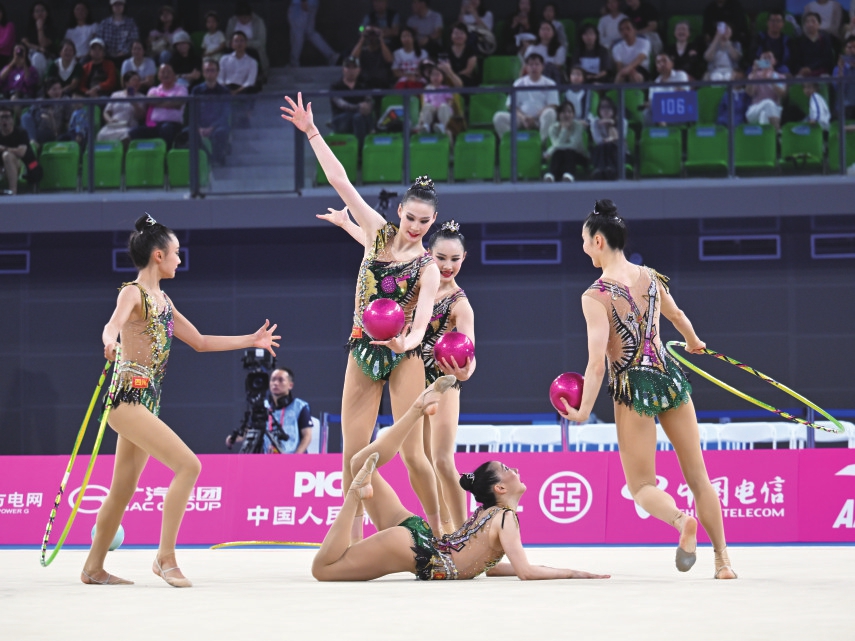 11月10日下午,在第十五届全运会艺术体操决赛中,成都体育学院竞技体校艺术体操队暨四川艺术体操队在集体全能的比赛中收获102.15的高分,获得该项目金牌,这也是本届全运会四川代表团获得的第四块金牌。