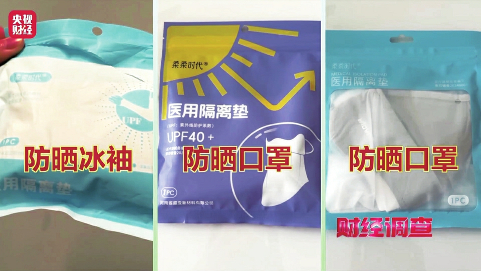 打着“医用隔离垫”招牌的防晒冰袖和防晒口罩。