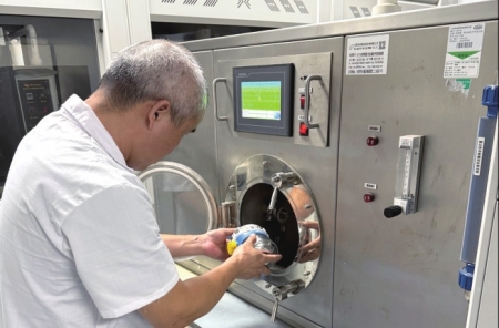 工作人员在试验过滤式消防自救呼吸器一氧化碳防护性能。图据新华社客户端