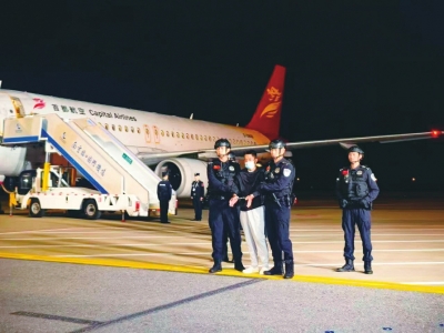 11月12日,佘智江(中)被引渡回国。图据长安街知事微信公众号