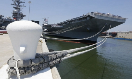 “杰拉尔德·R·福特”号航空母舰资料图片。图据新华社客户端