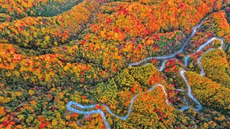每逢秋季,一场红色的魔法秀便在此上演。40余种变色树种次第“燃”遍层峦,织就“亚洲最长红地毯”。色彩层次之丰,如天工调色;景观规模之宏,浩荡磅礴;观赏周期之长,宛若时光在此停驻。