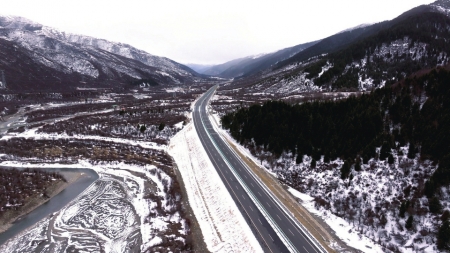 而四川正在建设中的乐西高速则铺设了“地暖”,这次可不是试验段,而是实实在在的“落地”,全线共布设27段共92组热管,总覆盖长度2374米,基本覆盖了全线严重冰雪路段。