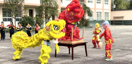 “我们学校北枕鸳鸯池,南通麻柳峡,东临米仓道,西倚曾家山,距朝天区约60公里,是典型的边远农村小学,全校仅有65名学生(含14名幼儿园娃娃)。”李家镇第二小学副校长张清蓉介绍,农村不少家长外出务工,导致非遗传承面临断档风险,“把狮舞引进校园,就是为了让文化根脉代代相传。”