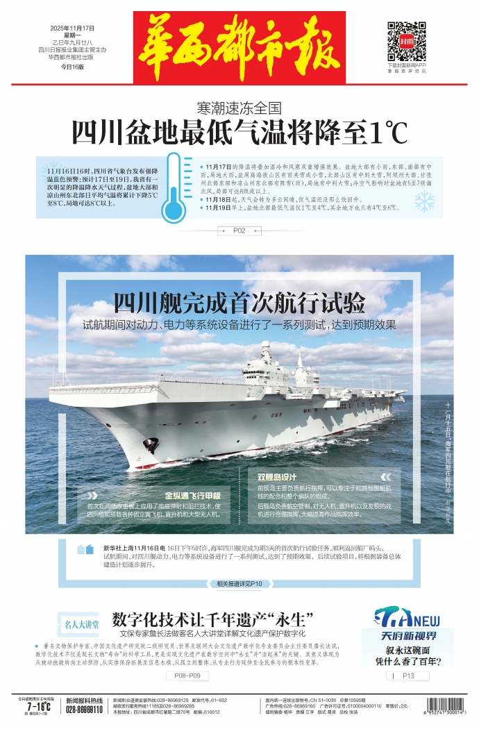 新华社上海11月16日电 16日下午5时许,海军四川舰完成为期3天的首次航行试验任务,顺利返回船厂码头。试航期间,对四川舰动力、电力等系统设备进行了一系列测试,达到了预期效果。后续试验项目,将根据装备总体建造计划逐步展开。