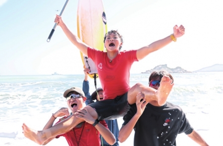 16日决赛当天,比赛场地汕头市南澳县青澳湾迎来开赛以来天气最好的一天,晴空万里、浪涌稳定,为选手们创造了绝佳的比赛条件。根据规则,每名选手在比赛时间内可以冲多道浪,每道浪裁判均会评分,取其中两个最高分之和为最终成绩。