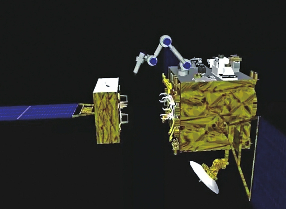 2016年6月我国发射自主研制的“遨龙一号”空间碎片主动清除飞行器工作示意图。 图据中国国家天文公众号