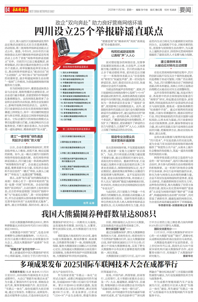 大熊猫是中国的“国宝”,也是全球珍稀野生动物的旗舰物种。11月21日,在四川成都开幕的2025全球熊猫伙伴大会上,我国大熊猫保护“成绩单”令世界瞩目。