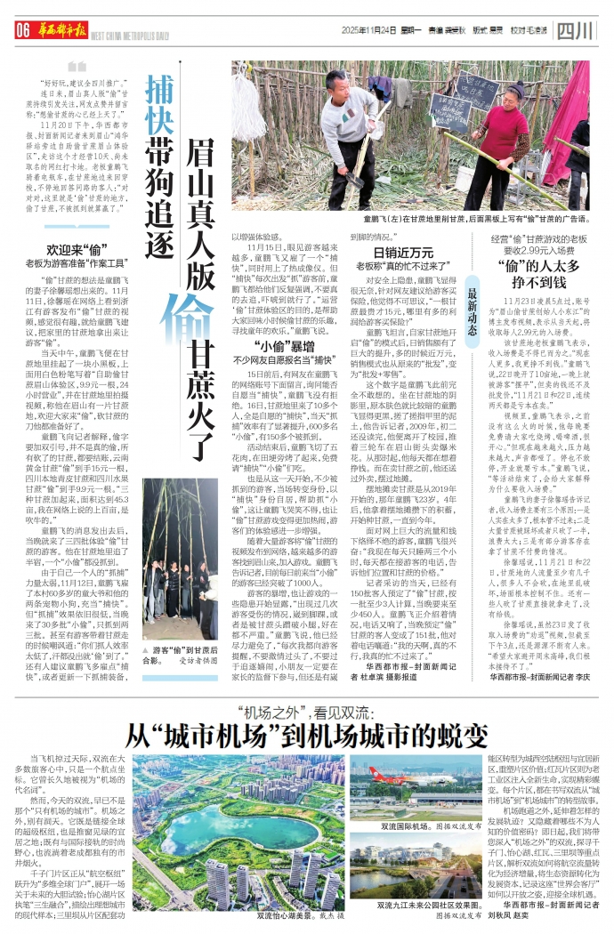 随着大量游客将“偷”甘蔗的视频发布到网络,越来越多的游客找到眉山来,加入游戏。童鹏飞告诉记者,目前每日前来当“小偷”的游客已经突破了1000人。