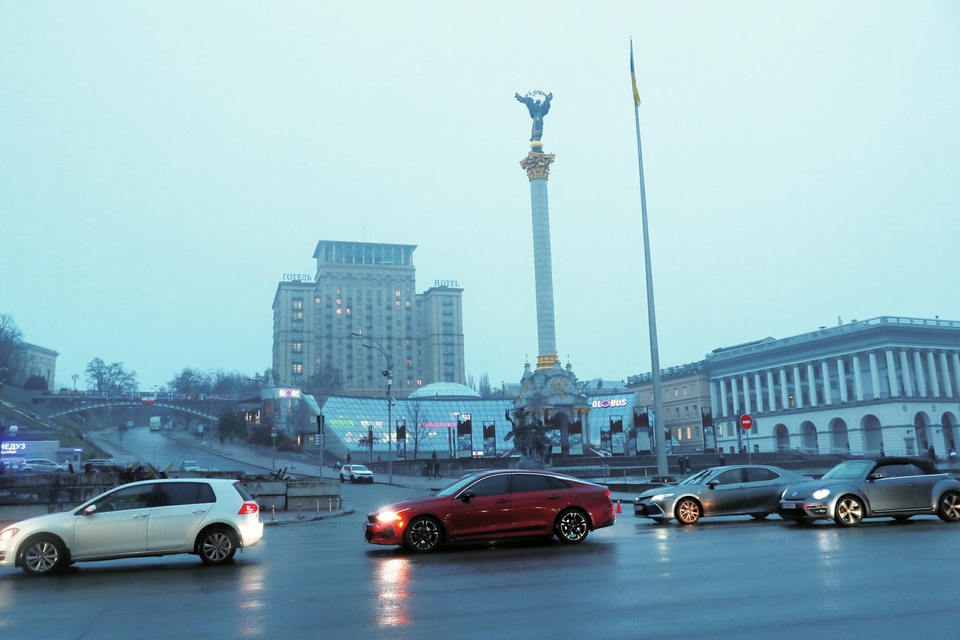 11月20日,乌克兰首都基辅主要街道的照明设施出现大面积停电,车辆在暮色中驶过独立广场。 新华社发