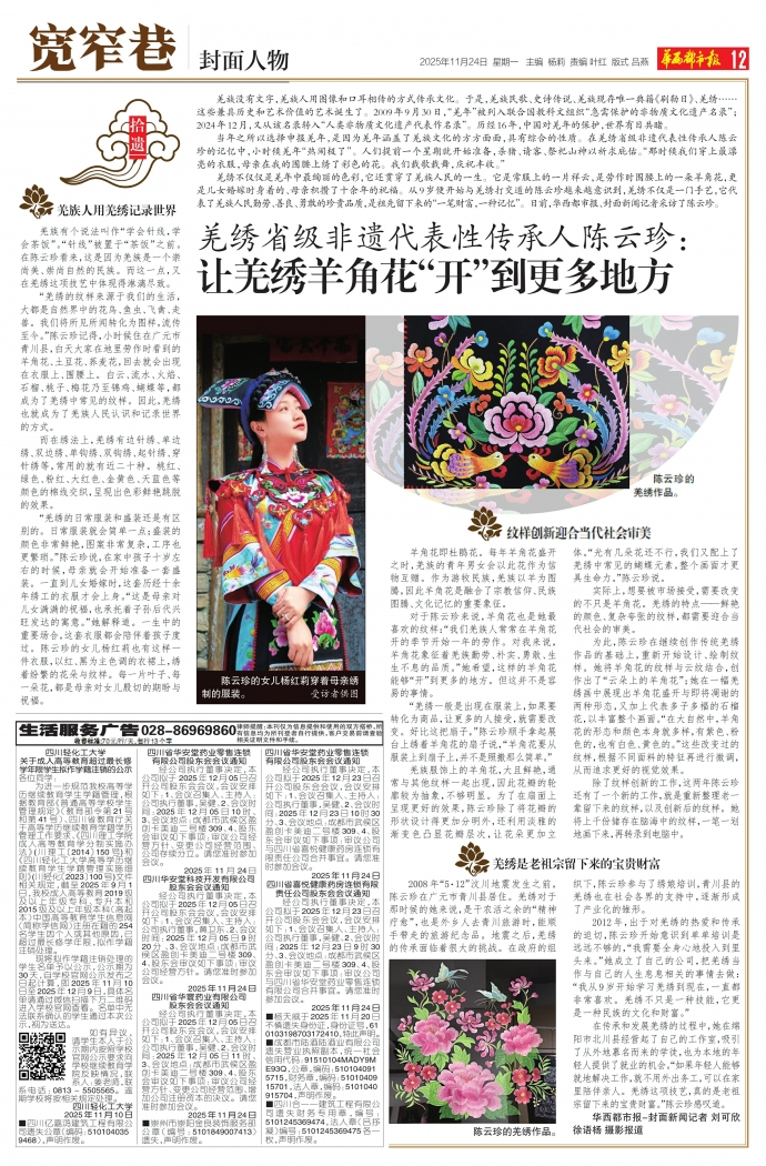 2012年,出于对羌绣的热爱和传承的迫切,陈云珍开始意识到单单培训是远远不够的,“我需要全身心地投入到里头来。”她成立了自己的公司,把羌绣当作与自己的人生息息相关的事情去做:“我从9岁开始学习羌绣到现在,一直都非常喜欢。羌绣不只是一种技能,它更是一种民族的文化和财富。”