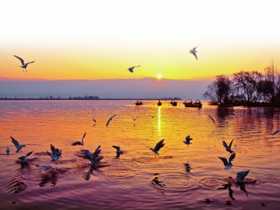 2025年11月,邛海国家湿地公园内群鸟翩飞。图据新华社客户端
