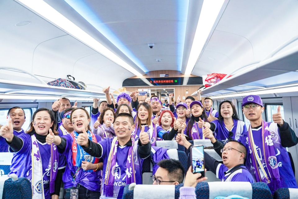 11月8日,“川超专列”C4074次列车载着约1200名球迷从南充奔赴达州。中国铁路成都局集团有限公司供图