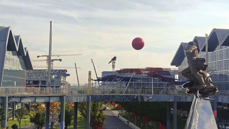 “夸父”园区中央,一座夸父雕像立于一座金属山峰之上,他身体前倾,前后伸出双臂,仿佛飞翔。远处塔吊林立处,紧凑型聚变能实验装置(BEST)主机大厅已经封顶。就在今年国庆节当天,其首个关键部件实现“毫米级落座”,正式进入主机组装阶段。