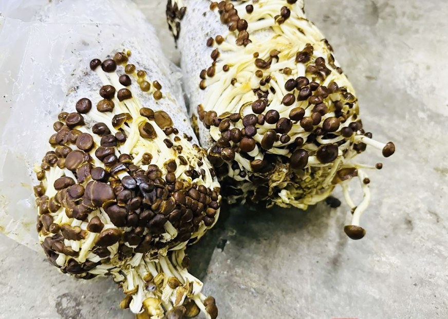 “发现这个新品种完全是偶然。”何晓兰向记者介绍,2023年,在黄色金针菇的栽培过程中,她和团队的科研人员偶然间发现,在个别的菌包里面有一些褐色的子实体。“随后,我们对其进行菌种分离鉴定,确定了它是黄色金针菇的突变菌株。”
