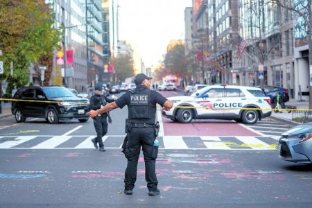 11月26日,在美国首都华盛顿,警方封锁案发现场附近街道。图据新华社客户端