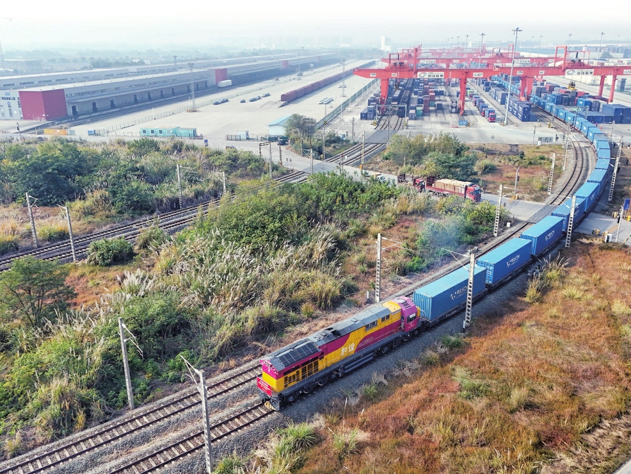 11月28日,X8086次中欧班列从成都青白江区国际铁路港驶出。新华社发