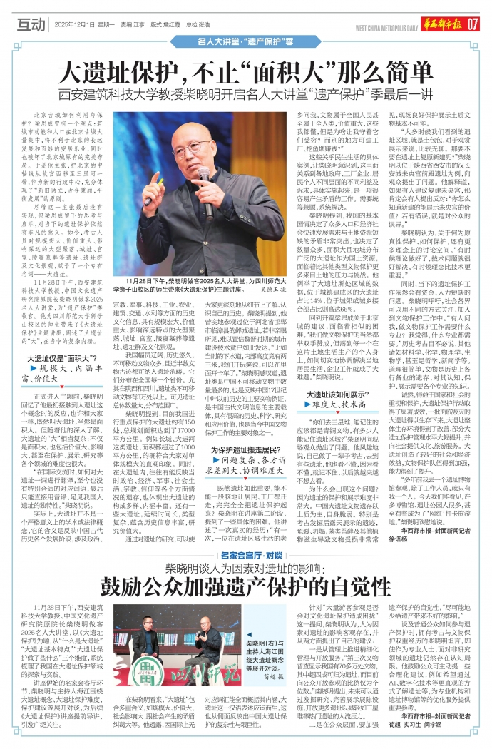 西安建筑科技大学教授柴晓明开启名人大讲堂“遗产保护”季最后一讲