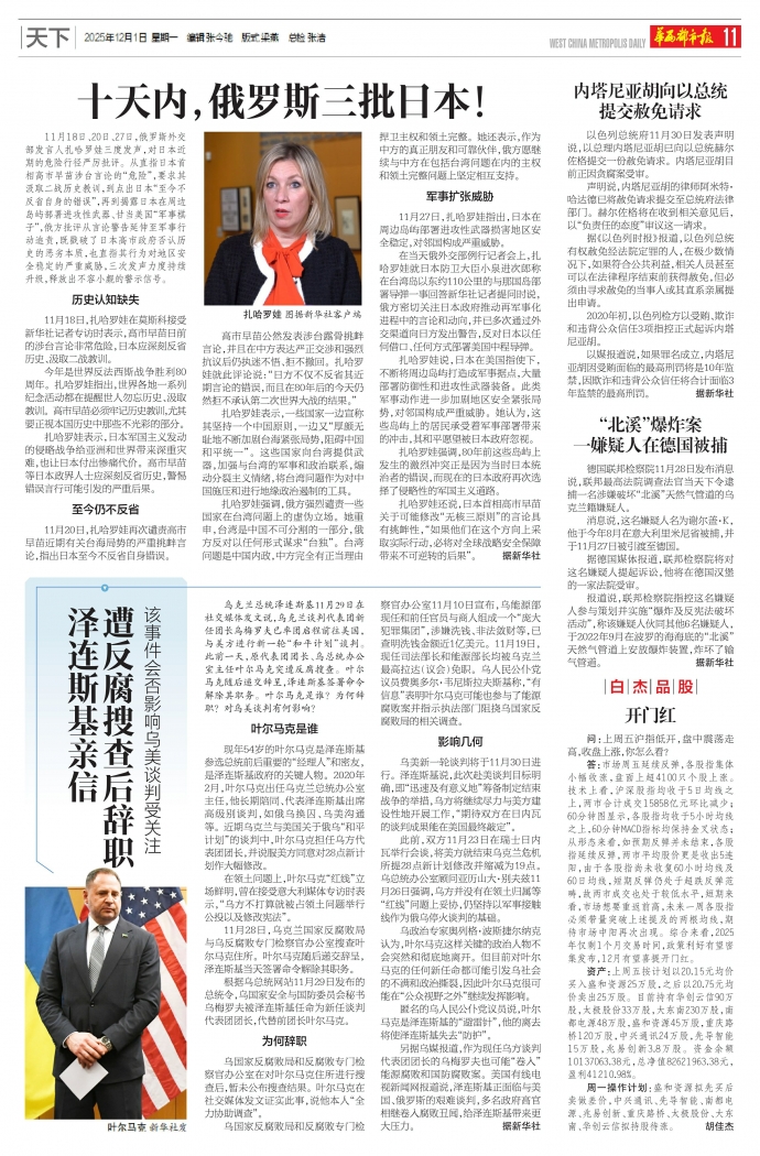 乌克兰总统泽连斯基11月29日在社交媒体发文说,乌克兰谈判代表团新任团长乌梅罗夫已率团启程前往美国,与美方进行新一轮“和平计划”谈判。此前一天,原代表团团长、乌总统办公室主任叶尔马克突遭反腐搜查。叶尔马克随后递交辞呈,泽连斯基签署命令解除其职务。叶尔马克是谁?为何辞职?对乌美谈判有何影响?