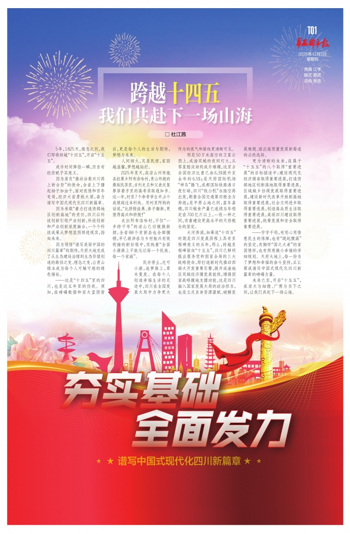 ——这是“十四五”里的四川,也是这五年里的你我。须知,在磅礴数据和宏大蓝图背后,更是每个人的生活与期待,梦想与未来。