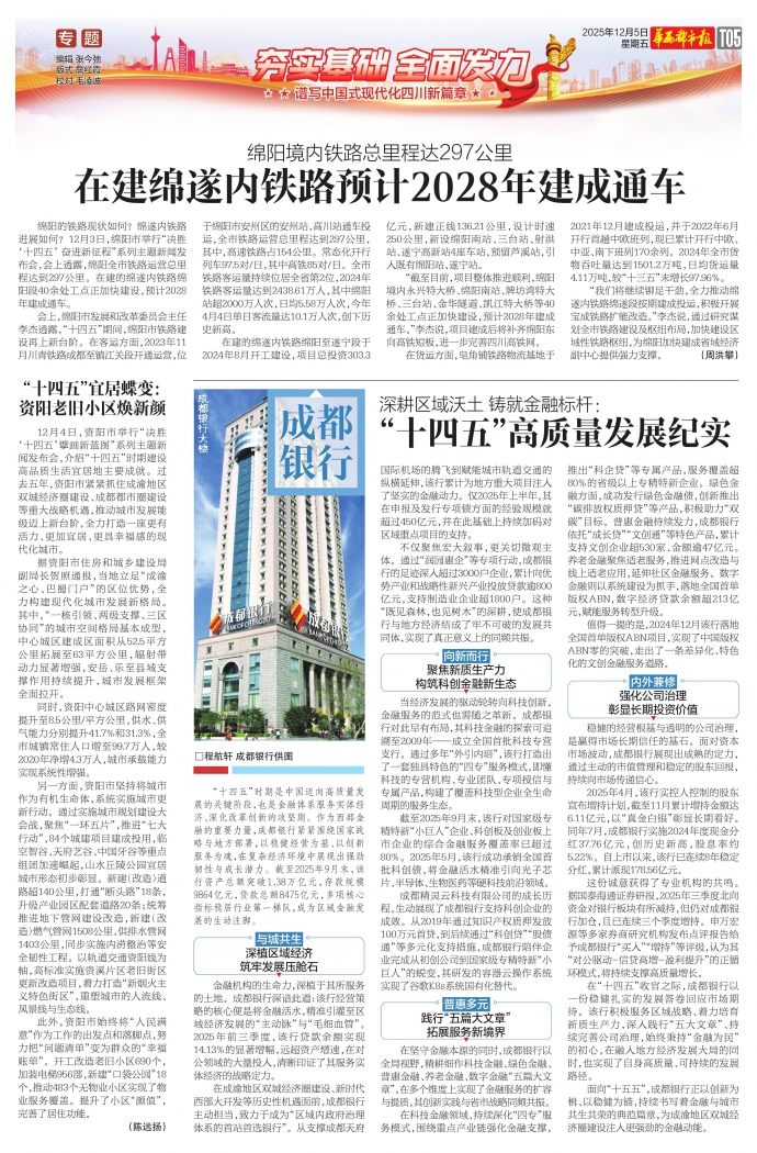 “截至目前,项目整体推进顺利,绵阳境内永兴特大桥、绵阳南站、牌坊湾特大桥、三台站、金华隧道、凯江特大桥等40余处工点正加快建设,预计2028年建成通车。”李杰说,项目建成后将补齐绵阳东向高铁短板,进一步完善四川高铁网。