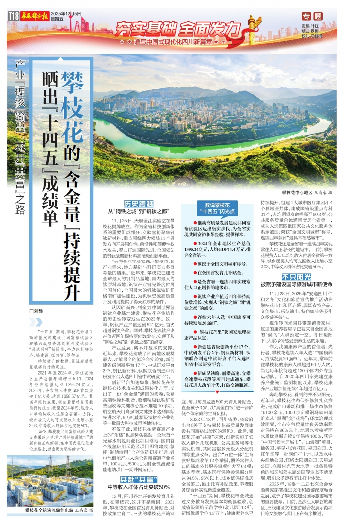 “十四五”期间,攀枝花开启了高质量发展建设共同富裕试验区和攀西战略资源创新开发试验区“两试引领”新阶段,全力以赴拼经济、搞建设、抓共富、促和谐。