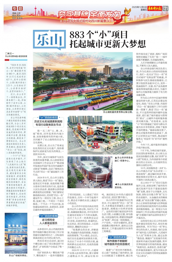 一个个“小”项目在街头逐步铺开,不仅体现了乐山践行“人民城市为人民”理念,探索内涵式发展,优化现代化城市体系,建设富有活力的创新城市、舒适便利的宜居城市、绿色低碳的美丽城市、安全可靠的韧性城市、崇德向善的文明城市、便捷高效的智慧城市的不懈努力,还如同坚实的基石,共同托举着“享誉全球的世界重要旅游目的地”的城市梦想。