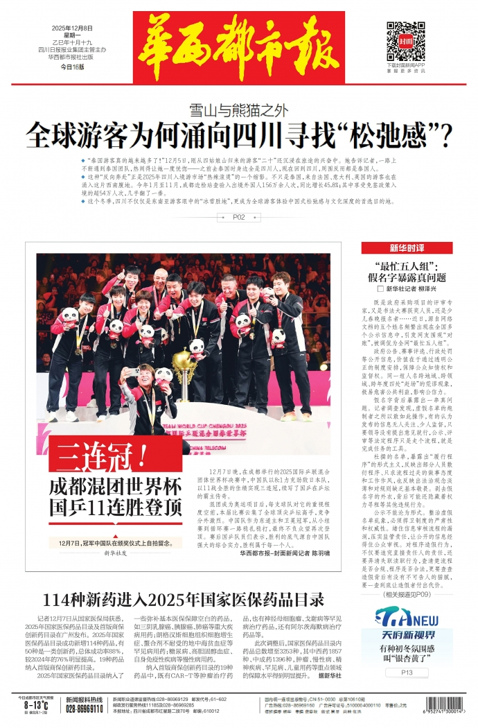 记者12月7日从国家医保局获悉,2025年国家医保药品目录及首版商保创新药目录在广州发布。2025年国家医保药品目录成功新增114种药品,有50种是一类创新药,总体成功率88%,较2024年的76%明显提高。19种药品纳入首版商保创新药目录。