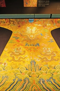 黄地流云蝙蝠纹妆花龙袍 清 中国丝绸博物馆藏