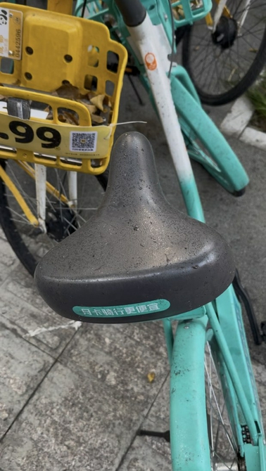 停在树下的共享单车座位上有湿漉漉的黏液。
