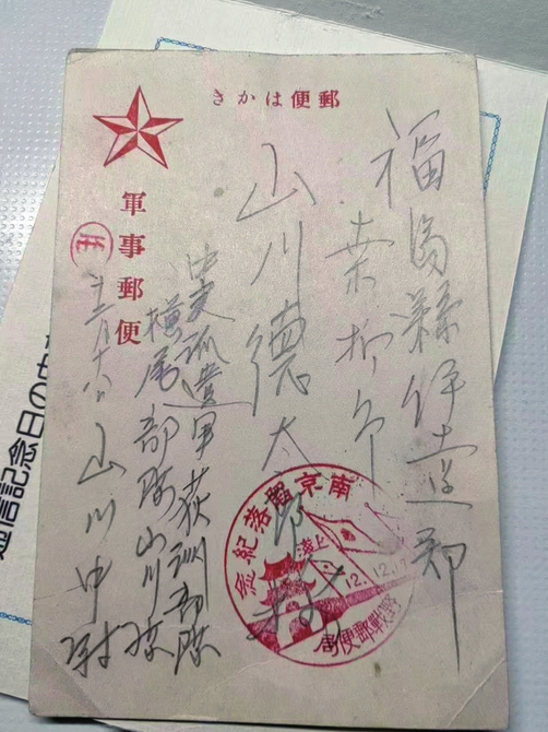 侵华日军中尉山川仪仁于1937年12月18日寄往日本福岛县山川德太郎的战地信件。 受访者供图