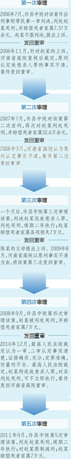2006年11月,针对赵某的上诉,河南省高院复核后裁定,原判认定故意杀人罪的事实不清,案件发回重审。