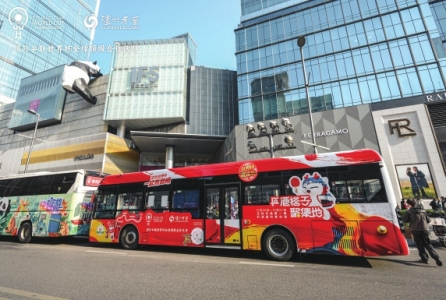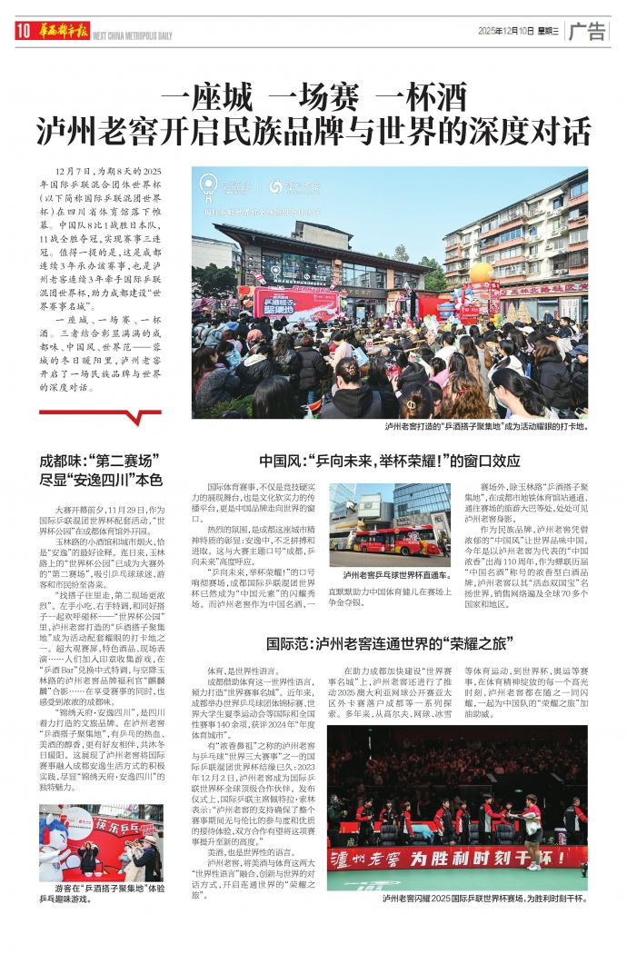 赛场外,除玉林路“乒酒搭子聚集地”,在成都市地铁体育馆站通道、通往赛场的旅游大巴等处,处处可见泸州老窖身影。